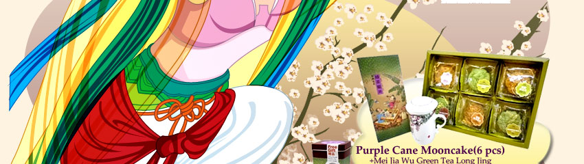 Purple Cane Mooncake(6 pcs)+Mei Jia Wu Green Tea Long Jing+Porcelain Mug